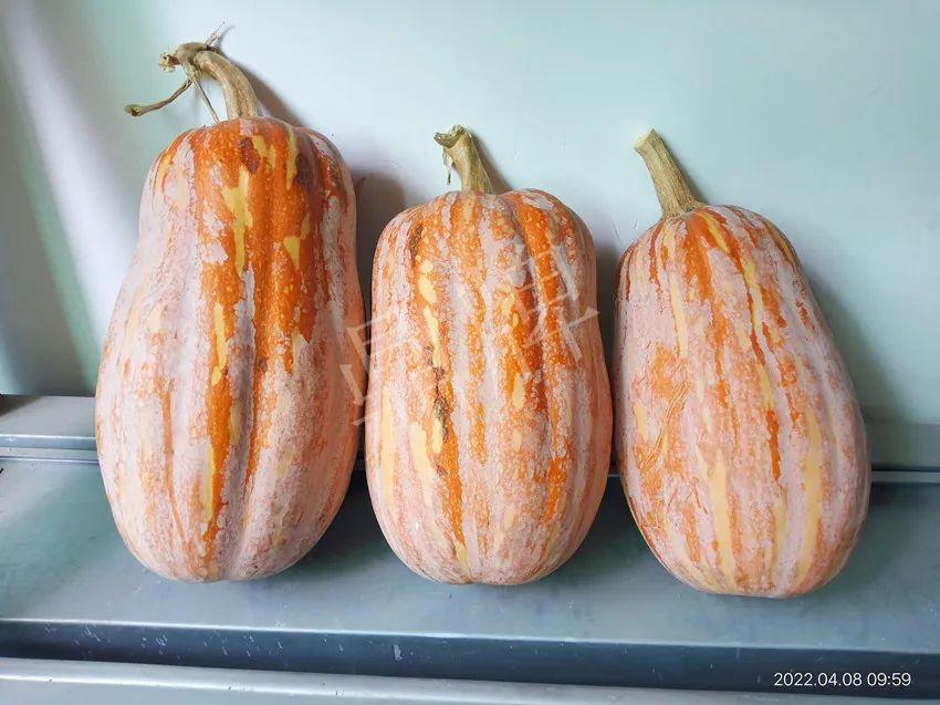 沒想到,“小胖墩”蜜本南瓜越存放越漂亮,瓜開始是粉黃色,到后面越來越紅亮(見前后照片對(duì)比)。李老板說,4月8日拍完照片后,家里吃了一個(gè),比之前好吃了,甜度有增加,口感細(xì)膩。