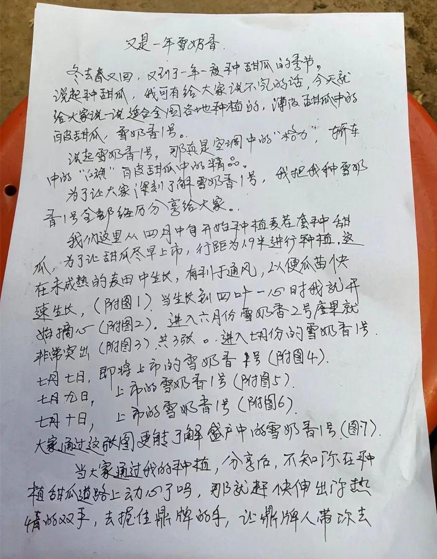 李老板是一位很務(wù)實(shí)、很勤奮的人,去年和今年都在麥田套栽了甜瓜,效益不錯。今年參加了鼎牌公司的“拍拍獎”活動,看他認(rèn)真書寫的稿件就讓人敬佩。