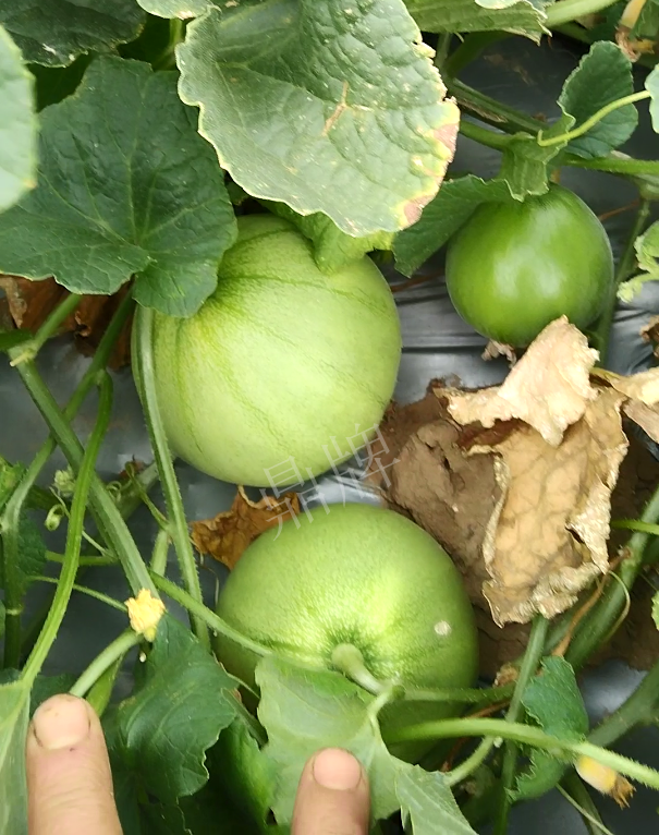 為了能夠分批供應(yīng)超市,“玉奶香2號(hào)”我是分4批種下去的。最早的一批是露地小拱棚,育苗是委托育苗工廠弄的,在4月1日就定植了。河南這邊雨水多,種“玉奶香2號(hào)”非常適合,因?yàn)樗目剐院?,特別耐雨水,種植中基本沒(méi)病害。今年下雨最多的時(shí)候,持續(xù)了一周,但是瓜的口感依舊香甜,不壞瓜,秧子也很好。