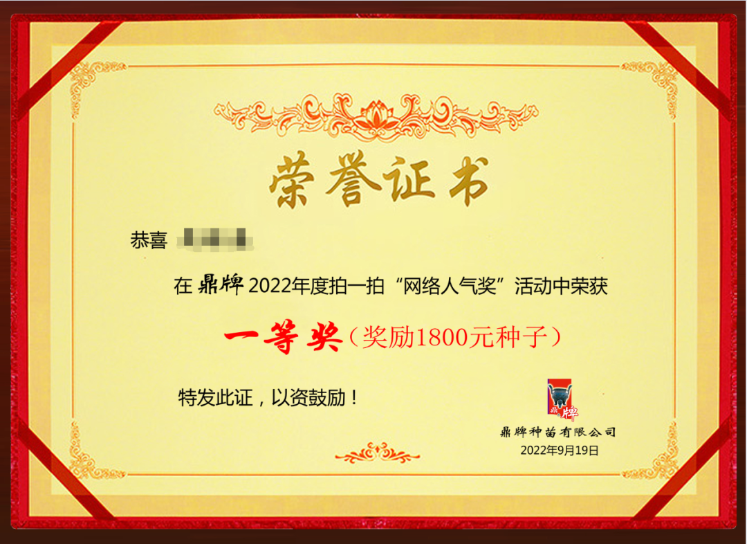 獎品:18000元鼎牌種子