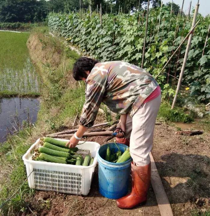 △ 劉健平夫婦露地栽培的“優(yōu)比1號”絲瓜