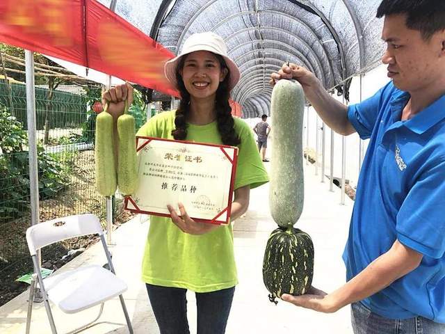 ▲ 客戶在展示“牛奶2號”絲瓜。