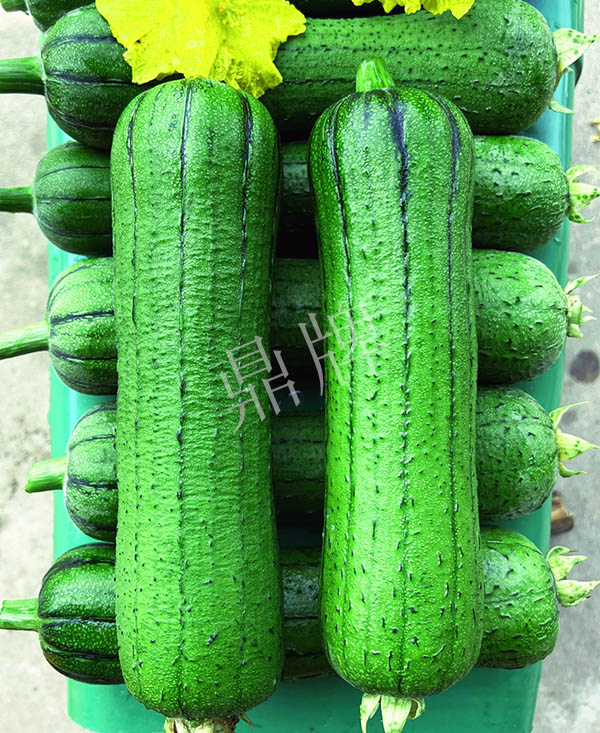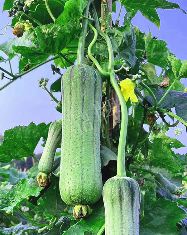 三倍體硬果絲瓜,可增產(chǎn)1倍。早熟,短棒、油光,三倍體絲瓜的果實硬度高,果肉緊實,口感親甜。已申請國家新品種保護。用種:9~10袋/畝。