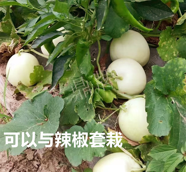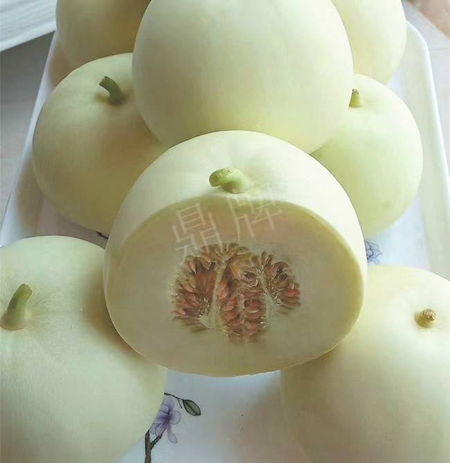 果實成熟后,甜度高達19度;果皮、果肉潤白,有一種天然質感,看到就讓人喜歡;果肉厚達3厘米,這是薄皮甜瓜中難以見到的品種,連皮吃時能聽到“咔嚓”之聲,脆爽無比;坐果早而多,單果重650克左右;多雨天氣不易裂瓜,棚室、露地都能獲得豐產。